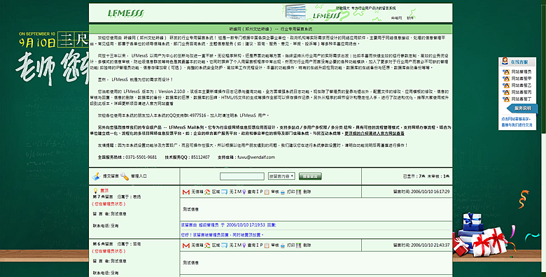 一步升级到2.20.0版!让我们手把手教你怎么实施时间:2019-09-27 自从新版本推出后,在保持了自身优势和特色的同时,融入了新的时代因子,得到了不少用户的喜爱。同时也有很多老用户咨询:我的版本是X.XX能不能升级?我的版本比较老,能不能升级到LFMessS 岭峰网行业专用留言系统 2.20.0版本?