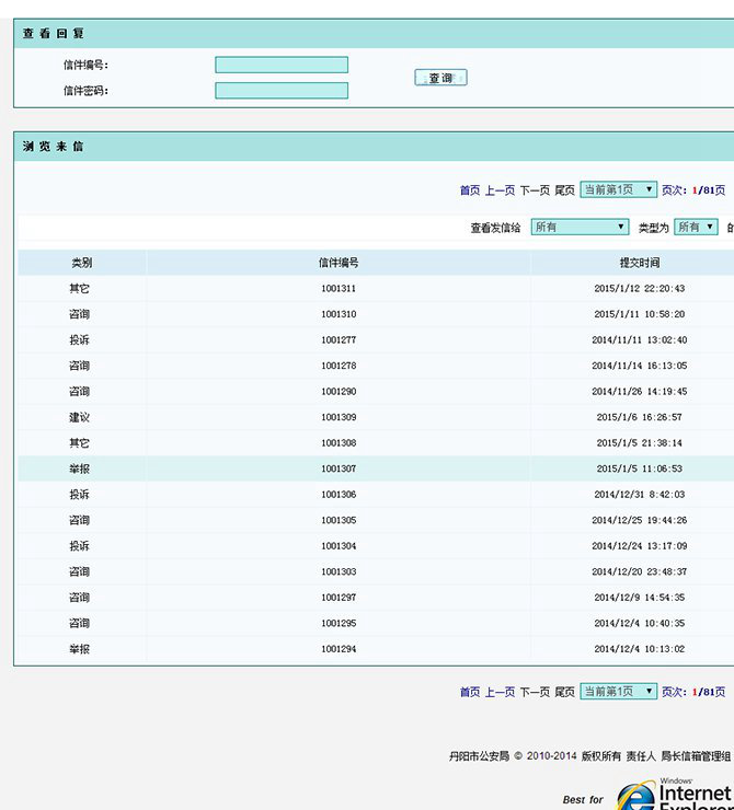 主页 >> 客户案例 >>LFMessS软件案例 >> 丹阳市公安局局长信箱系统